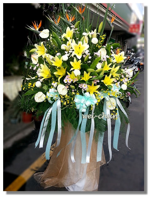花材 : 百合+火鶴+菊花+文心蘭+天堂鳥等 規格 : 一個